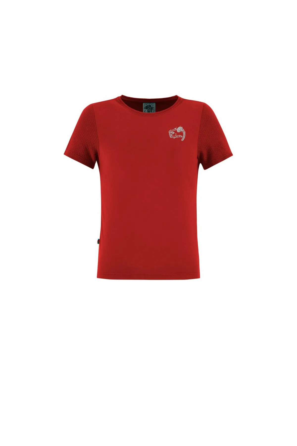 Outdoor- Und Kletter-T-Shirt Aus Bi-Elastischem Bio-Baumwollstoff. Jersey-Jacquard Für Die Ärmel. Druck Auf Der Vorder- Und Rückseite. Guter Komfort. Schlanke Passform. Hergestellt In Italien.