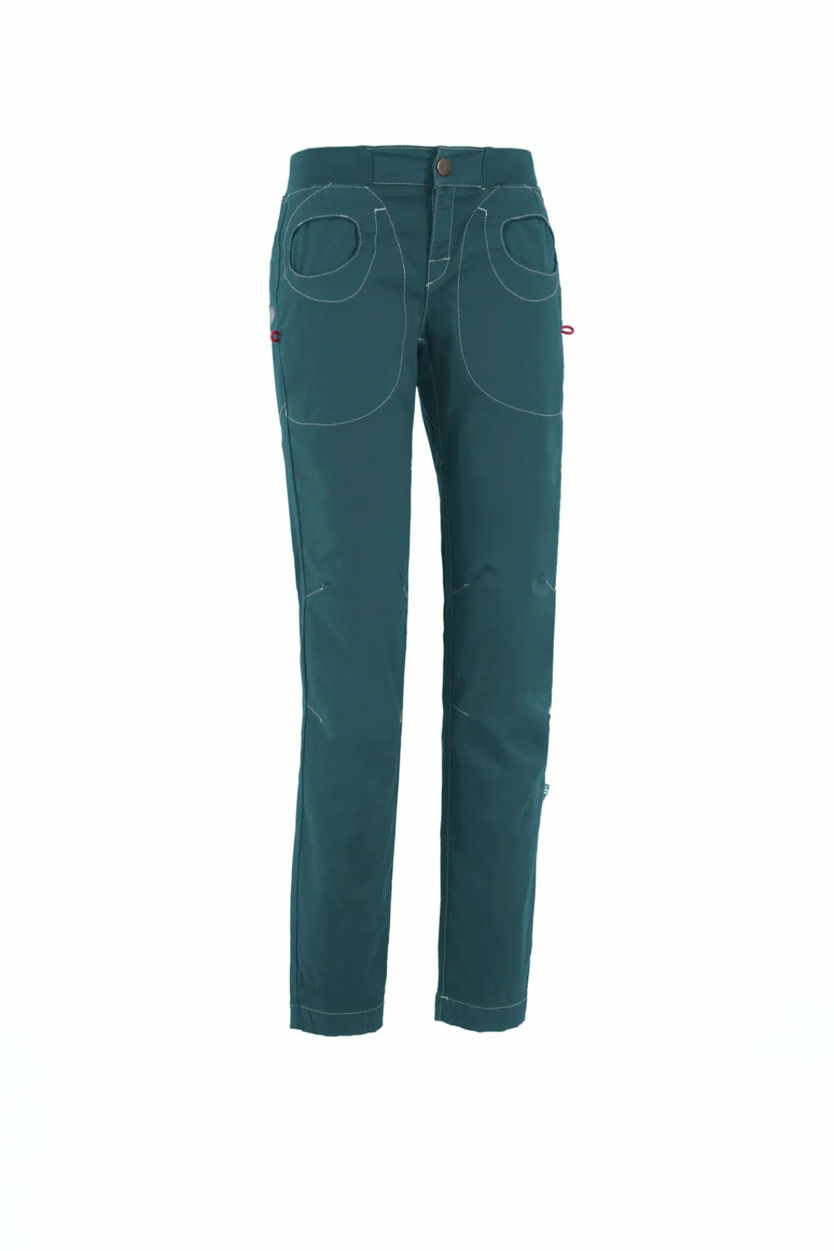 Urbane Kletterhose Aus Superstretch-Bio-Baumwolle. Stickerei Auf Der Rückseite. Bürstenhalter Auf Beiden Seiten. Verstellbare Taille. Maximaler Komfort Und Mobilität. Eng Passend. Hergestellt In Italien.