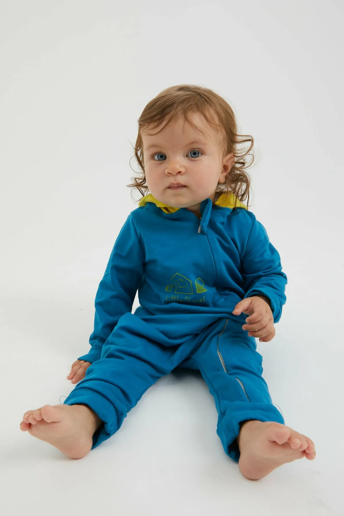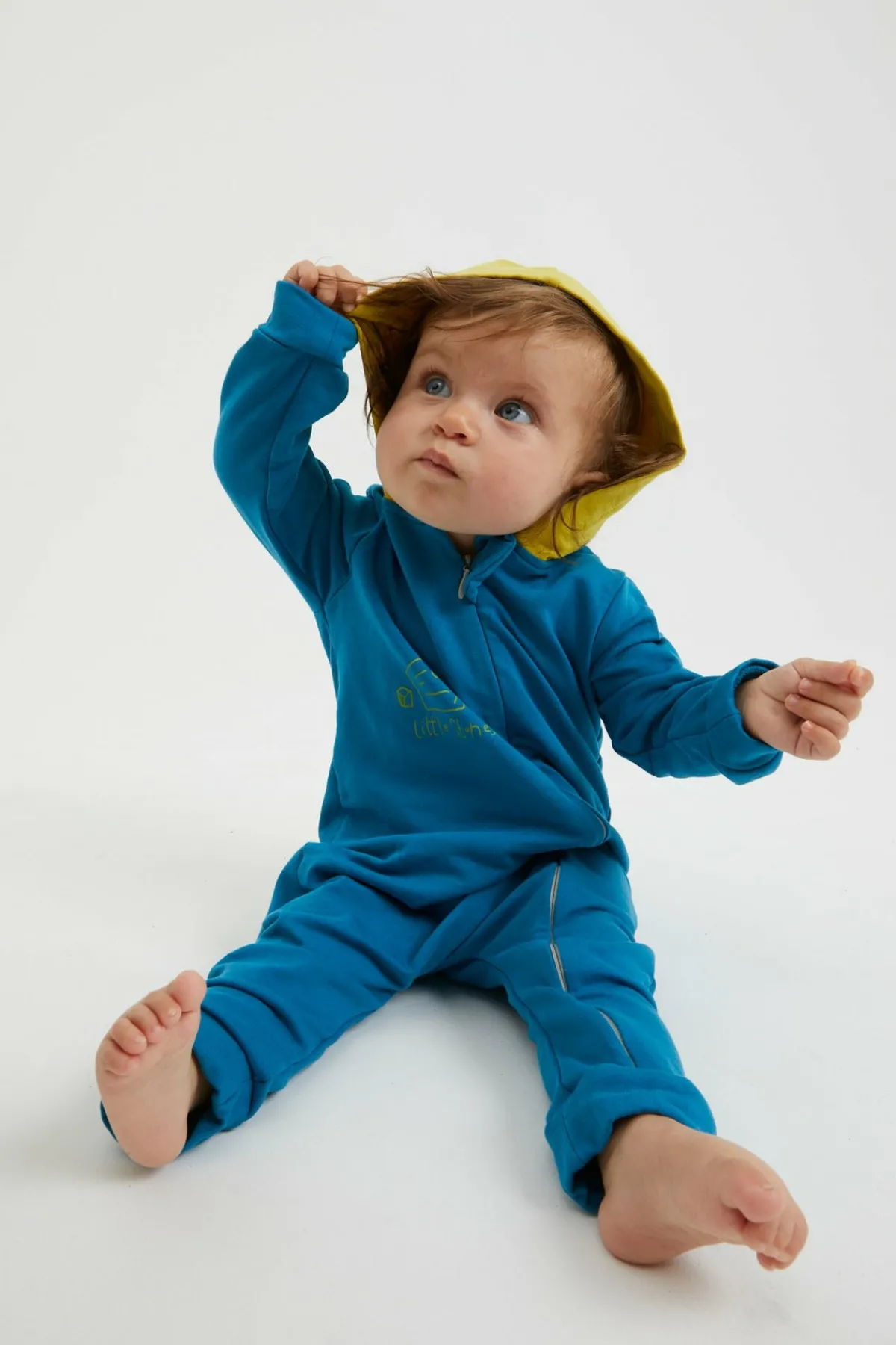 Babyoverall Aus Schwerem Jersey. Praktische Frontöffnung Mit Reißverschluss. Haube. Originaldruck Auf Der Vorderseite. Hergestellt In Italien.