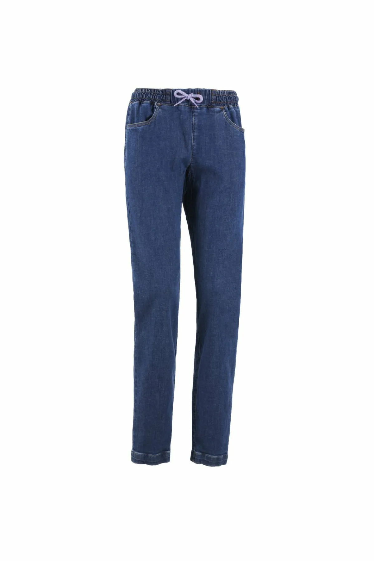 Outdoor- Und Kletterhose Denim. Ripp An Der Taille. Verstellbare Taille. Stickerei Auf Der Vorderseite. Taschen Auf Der Vorderseite. Outdoor- Und Kletterlinie. Guter Komfort Und Schmale Passform. Hergestellt In Italien.