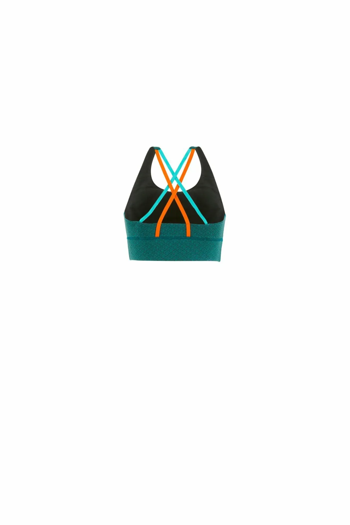 Gepolsterter Bh Aus Bielastischem Bedrucktem Stoff. Bio-Baumwolle. Abnehmbare Polsterung. Kletterkonzeptlinie. Stickerei Auf Der Vorderseite. Elastische Hosenträger. Guter Komfort Und Mobilität. Hergestellt In Italien.