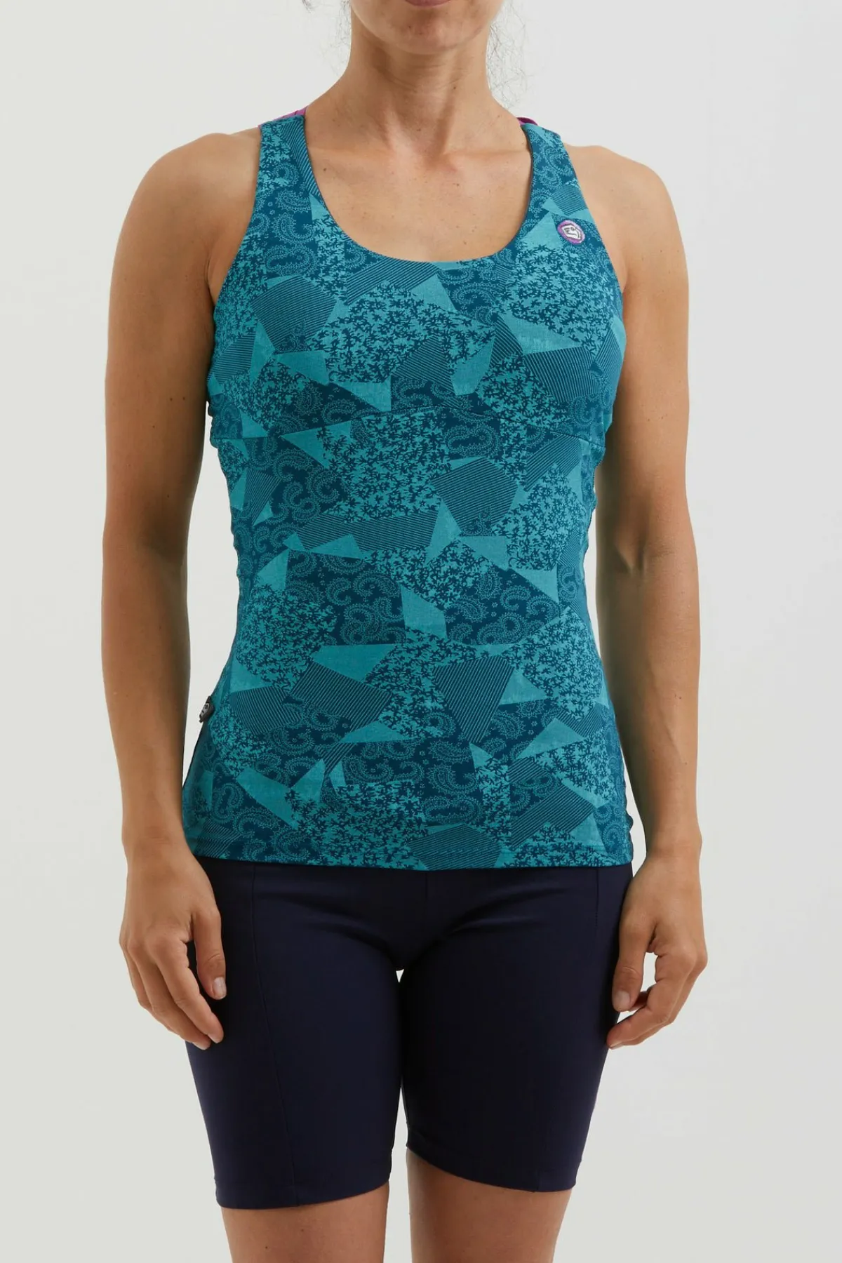 Integrierter Tank-Top-Bh Aus Bielastischem Bedrucktem Stoff. Bio-Baumwolle. Abnehmbare Polsterung. Stickerei Auf Der Vorderseite. Elastische Hosenträger. Guter Komfort Und Gute Passform. Hergestellt In Italien.