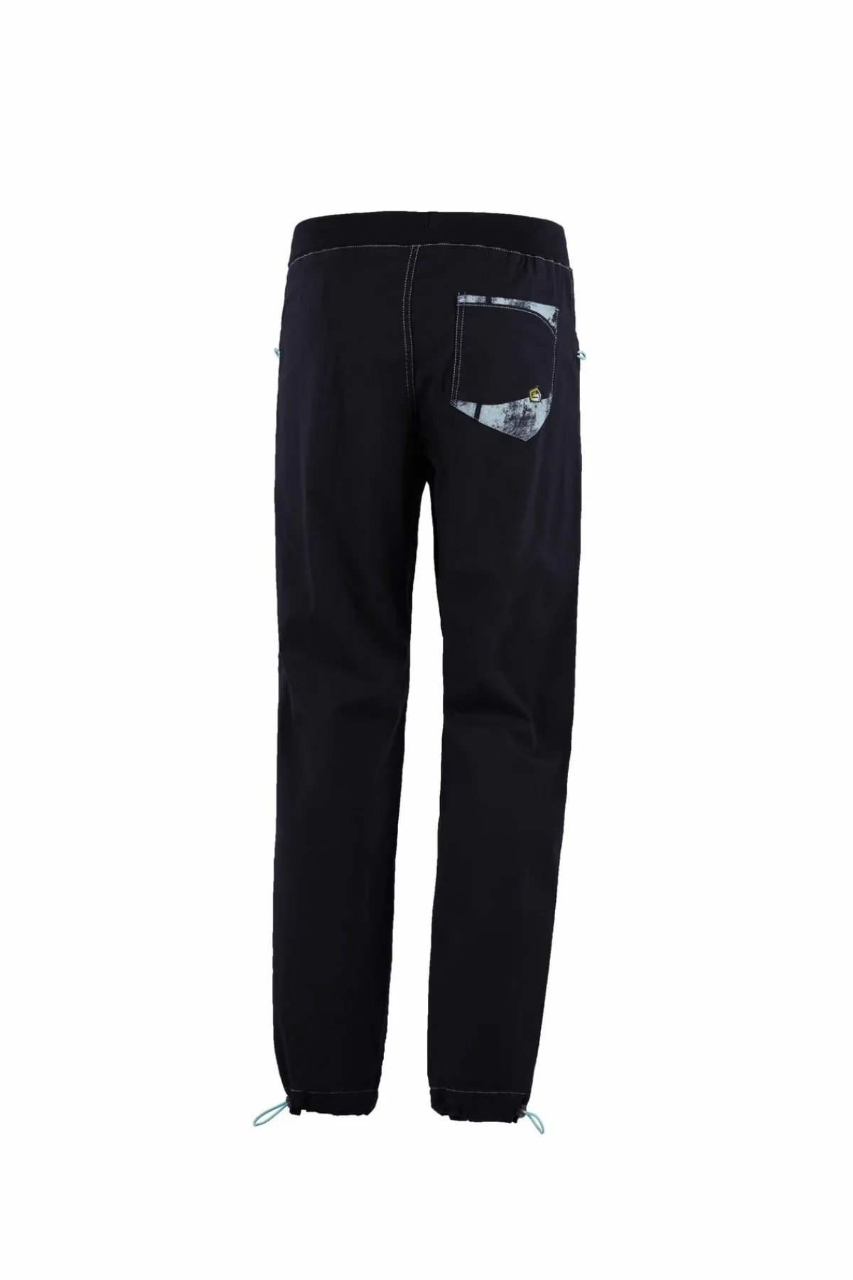 Outdoor- Und Kletterhose Aus Leichtem Canvas Aus Bio-Baumwolle. Farbige Nähte. Tasche Auf Der Rückseite Bedruckt Und Bestickt. Verstellbarer Beinabschluss. Maximaler Komfort Und Mobilität. Schlanke Passform. Komplett In Italien Hergestellt.