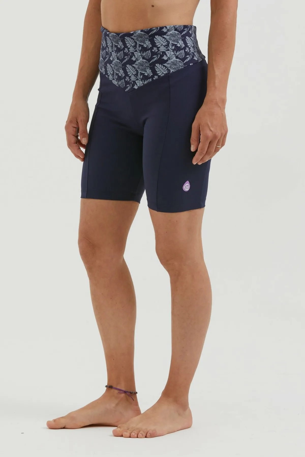 Kurze Leggings Aus Leichtem Jersey-Interlock. Druck Auf Der Taille. Stickerei Unten An Der Hüfte. Maximaler Komfort Und Mobilität. Schlanke Passform. Hergestellt In Italien.