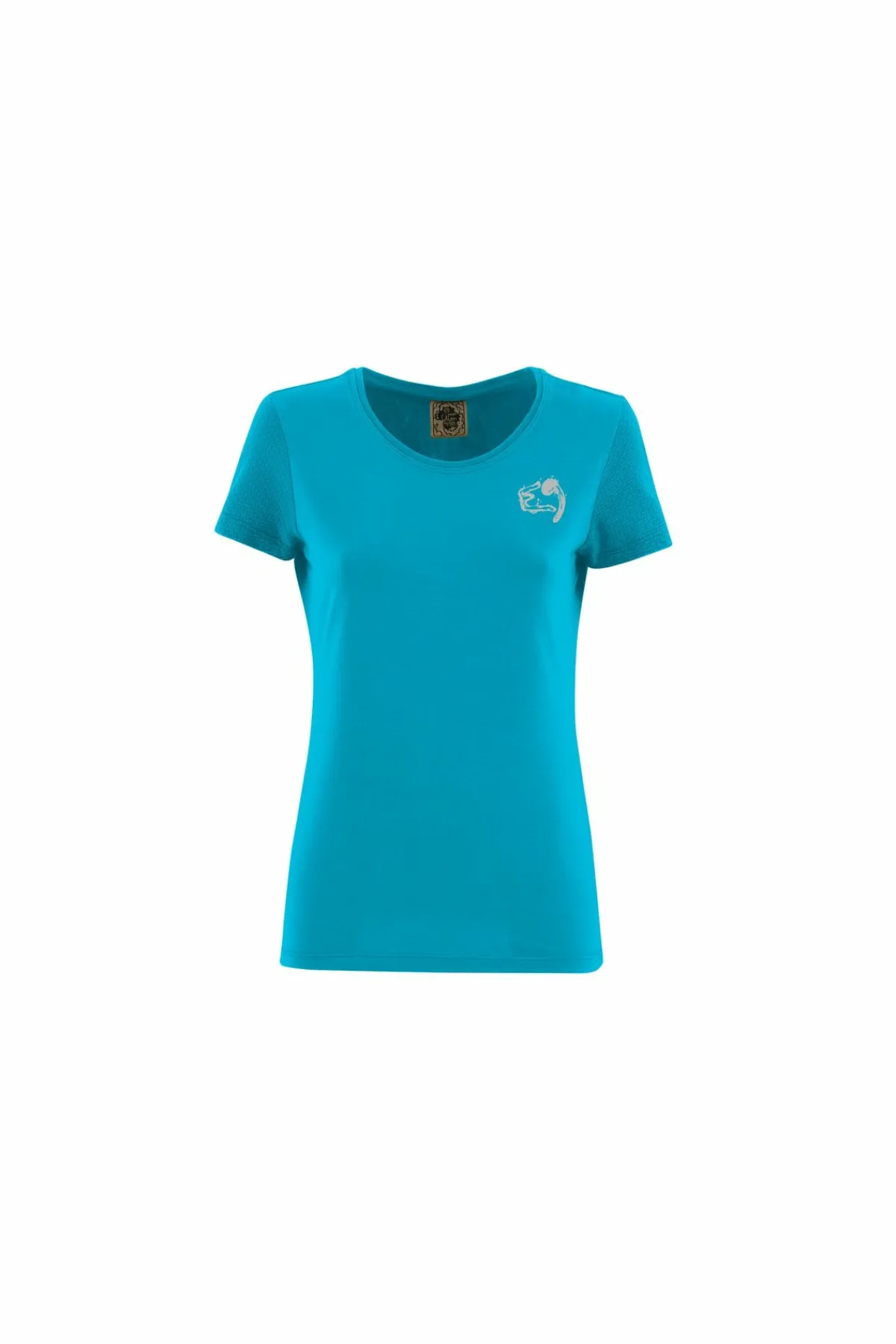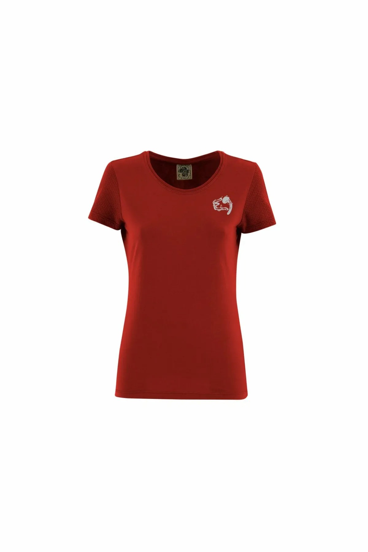 Outdoor- Und Kletter-T-Shirt Aus Bielastischem Bio-Baumwollstoff. Jersey-Jacquard Für Die Ärmel. Druck Auf Der Vorder- Und Rückseite. Guter Komfort. Schlanke Passform. Hergestellt In Italien.
