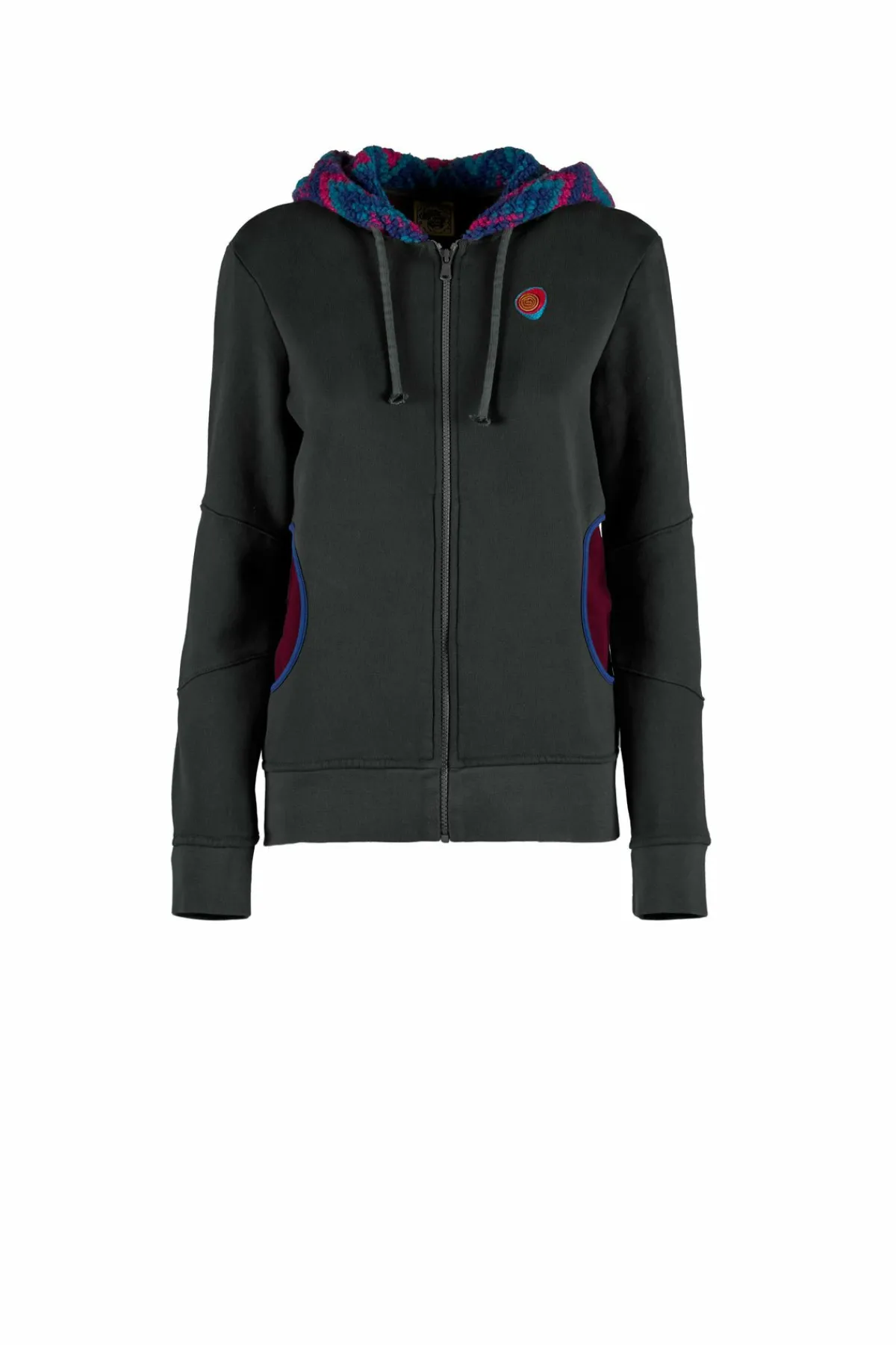 Langärmliges Fleece Mit Kapuze Aus Strickstoff. Taschen In Kontrastfarbe. Reißverschluss Vorne. Verstellbare Kapuze. Stickerei Auf Der Herzseite. Komfort Und Mobilität. Normale Passform. Hergestellt In Italien.