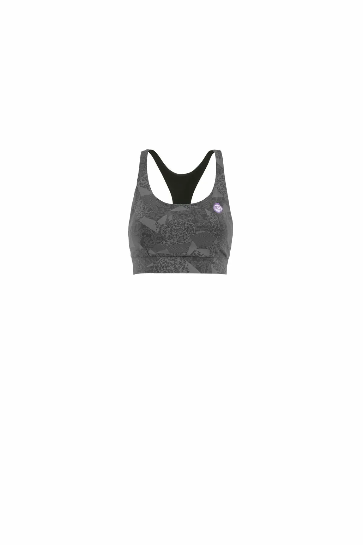 Gepolsterter Bh Aus Bielastischem Bedrucktem Stoff. Bio-Baumwolle. Abnehmbare Polsterung. Kletterkonzeptlinie. Stickerei Auf Der Herzseite. Guter Komfort Und Mobilität. Hergestellt In Italien.