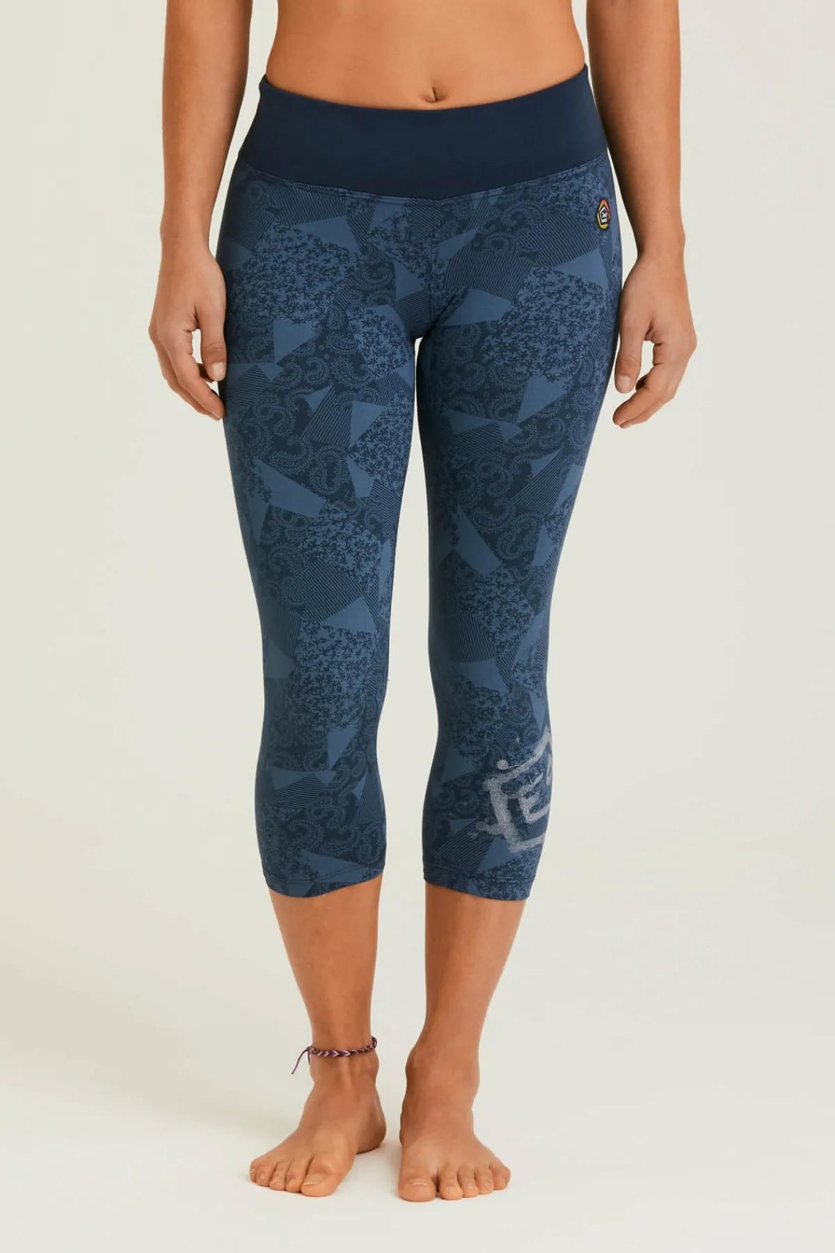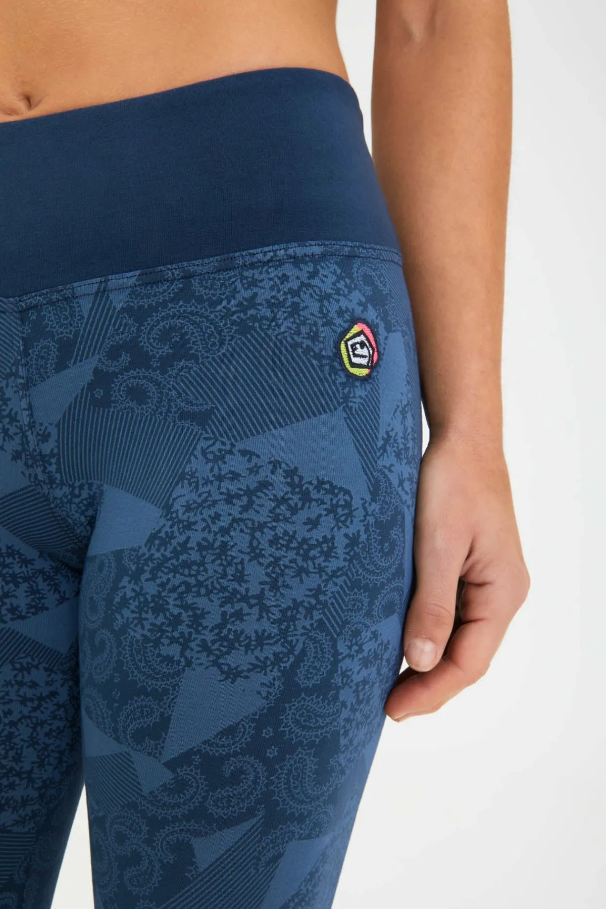 3/4-Leggings Aus Bedrucktem, Bielastischem Stoff. Originaldruck Unten Links. Stickerei Am Linken Vorderbein. Maximaler Komfort Und Mobilität. Schlanke Passform. Hergestellt In Italien.