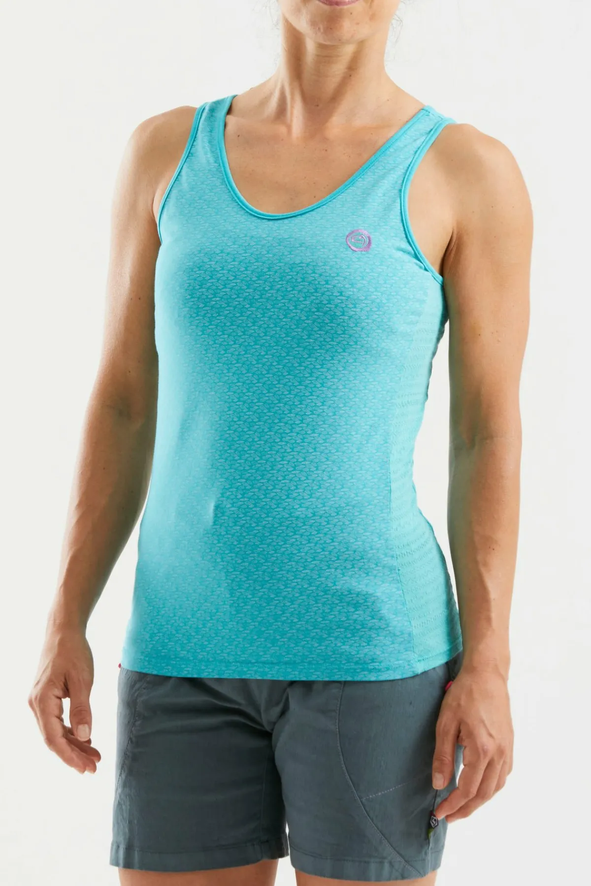 Tanktop Aus Bi-Elastischem Stoff Und Jacquard-Stoff An Den Seiten. Stickerei Auf Der Herzseite. Druck Auf Der Vorderseite. Urbane Konzeptlinie. Bester Komfort. Hergestellt In Italien.