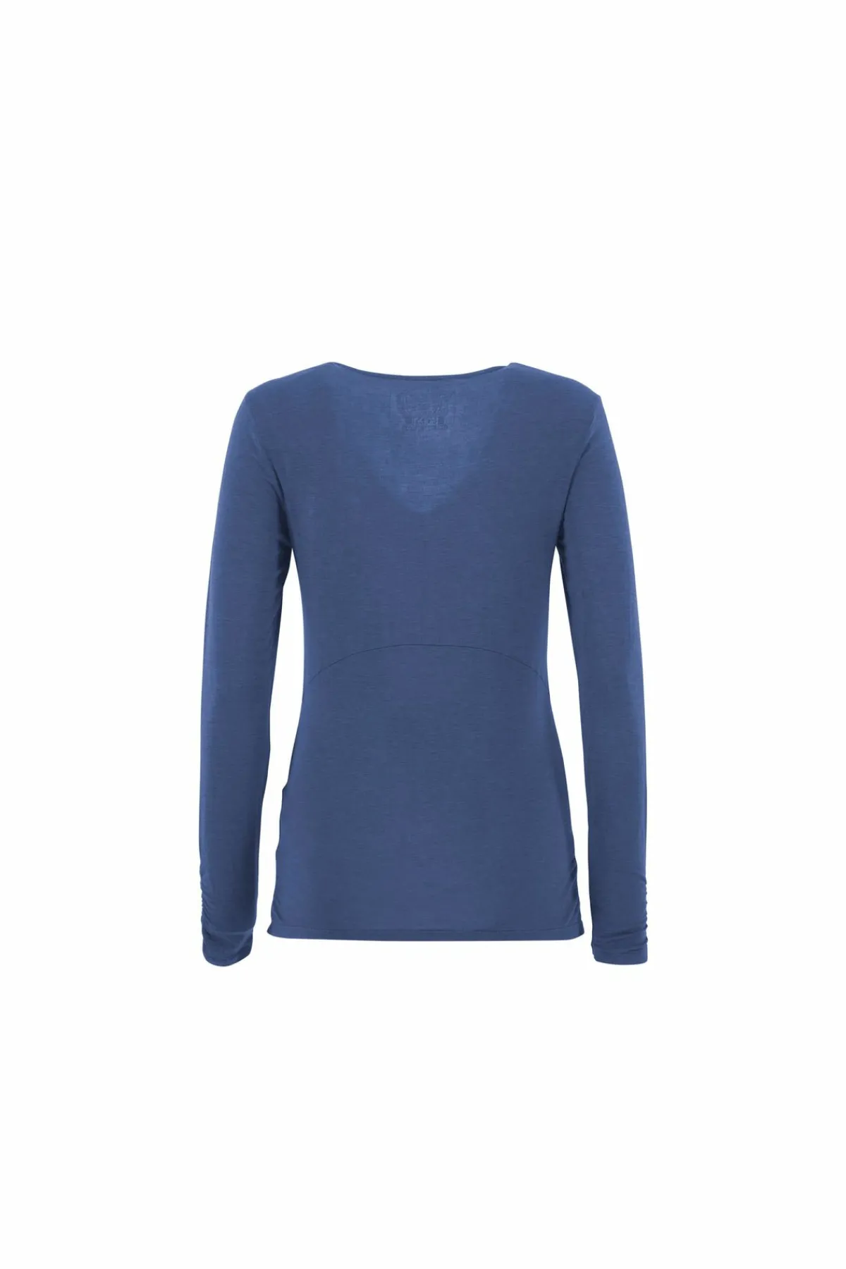 Langarm-T-Shirt Aus Modal-Jersey. V-Kragen. Urbane Konzeptlinie. Druck Auf Der Vorderseite. Guter Komfort. Normale Passform. Hergestellt In Italien.