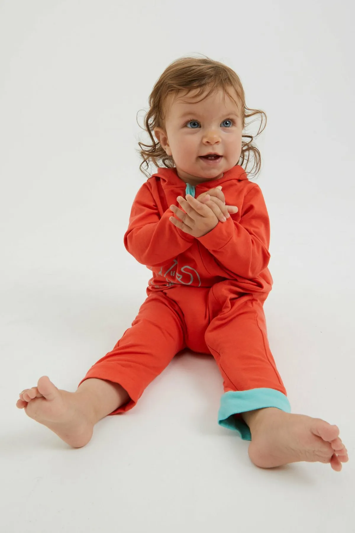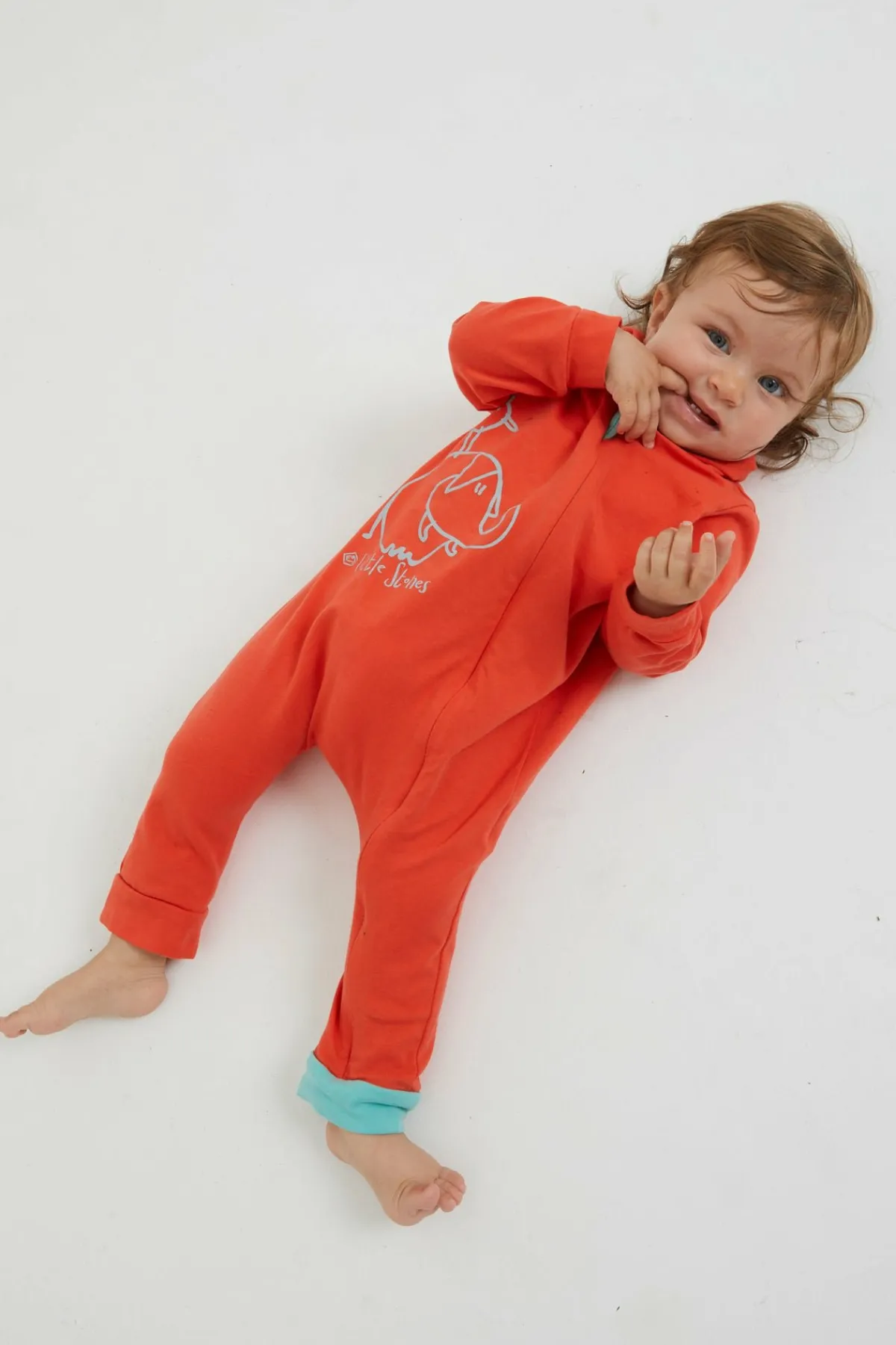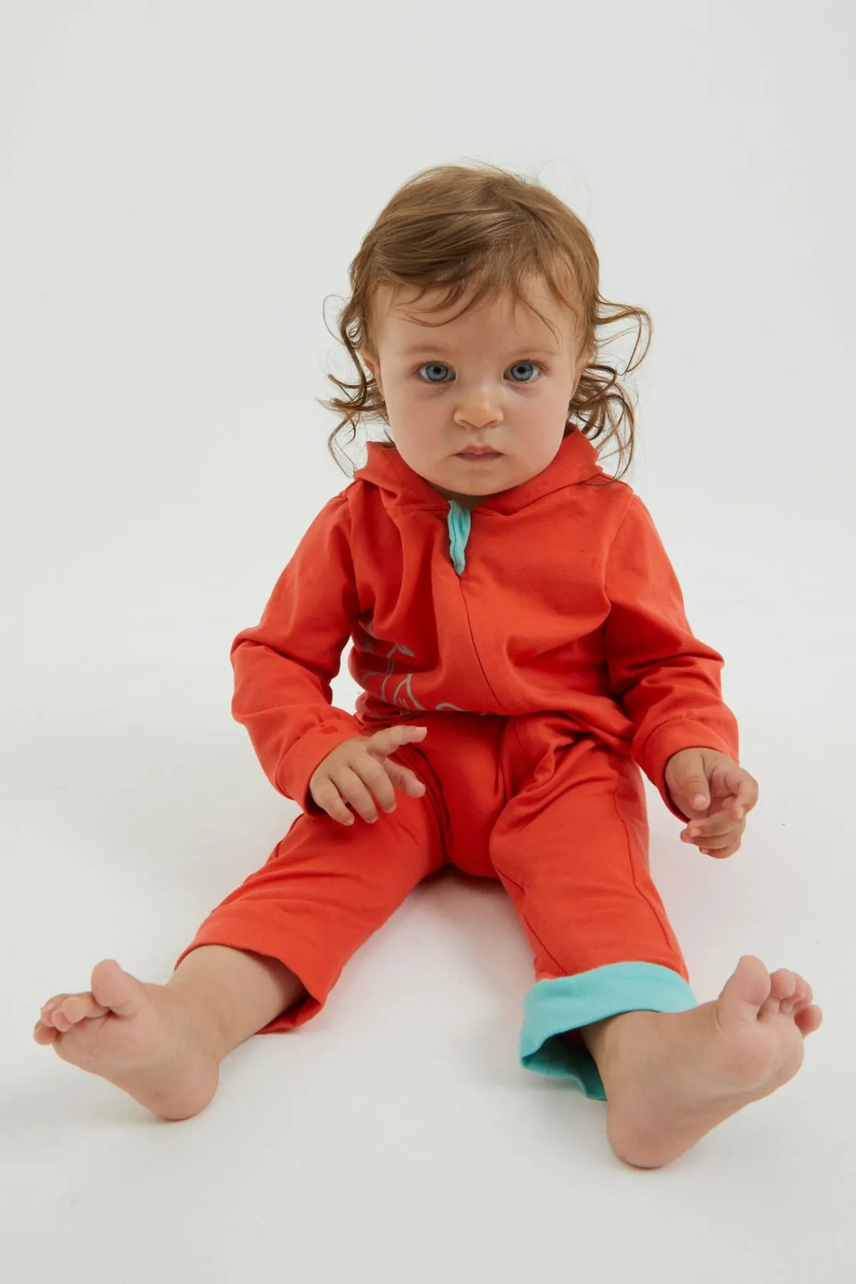 Babyoverall Aus Bieelastischem Baumwollstoff. Praktische Frontöffnung Mit Reißverschluss. Haube. Originaldruck Auf Der Vorderseite. Hergestellt In Italien.