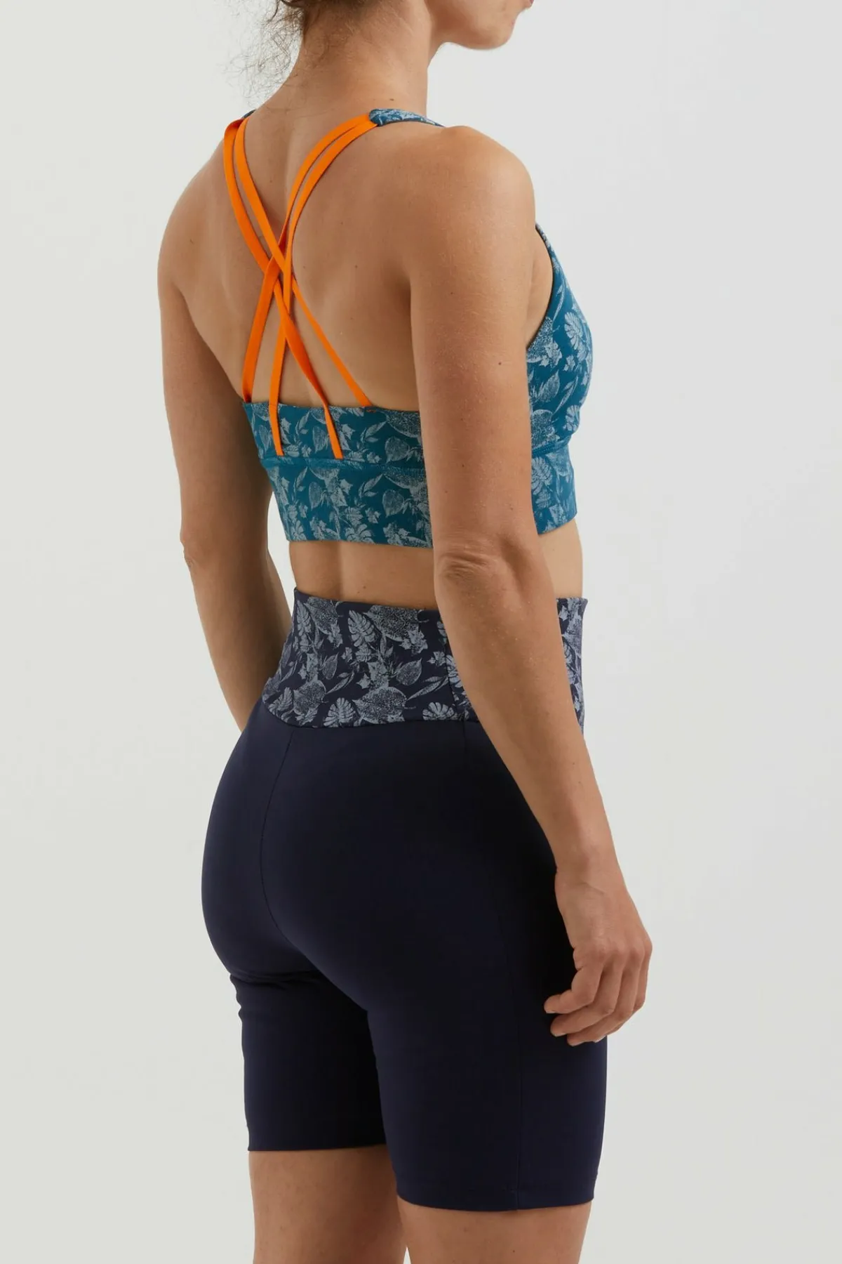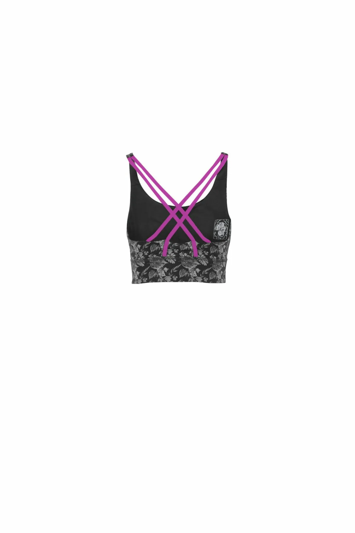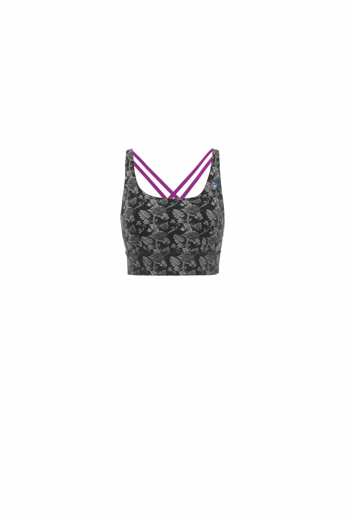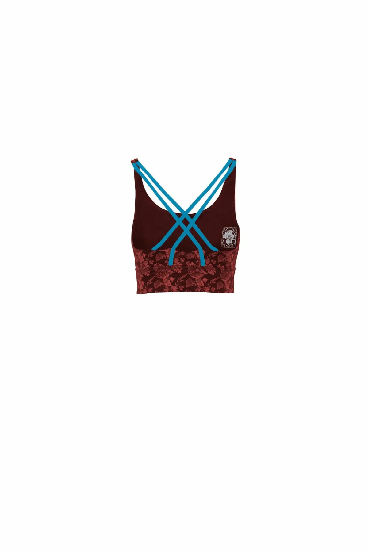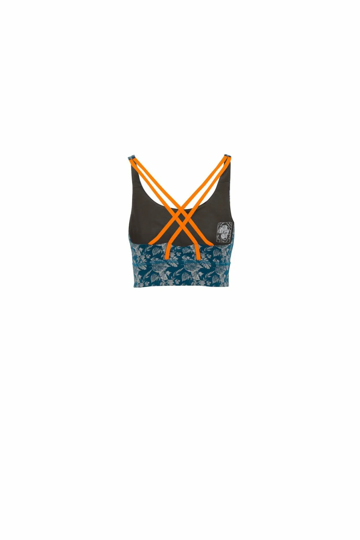 Gepolsterter Bh Aus Bielastischem Bedrucktem Stoff. Bio-Baumwolle. Abnehmbare Polsterung. Kletterkonzeptlinie. Druck Und Stickerei Auf Der Vorderseite. Elastische Hosenträger. Guter Komfort Und Mobilität. Hergestellt In Italien.
