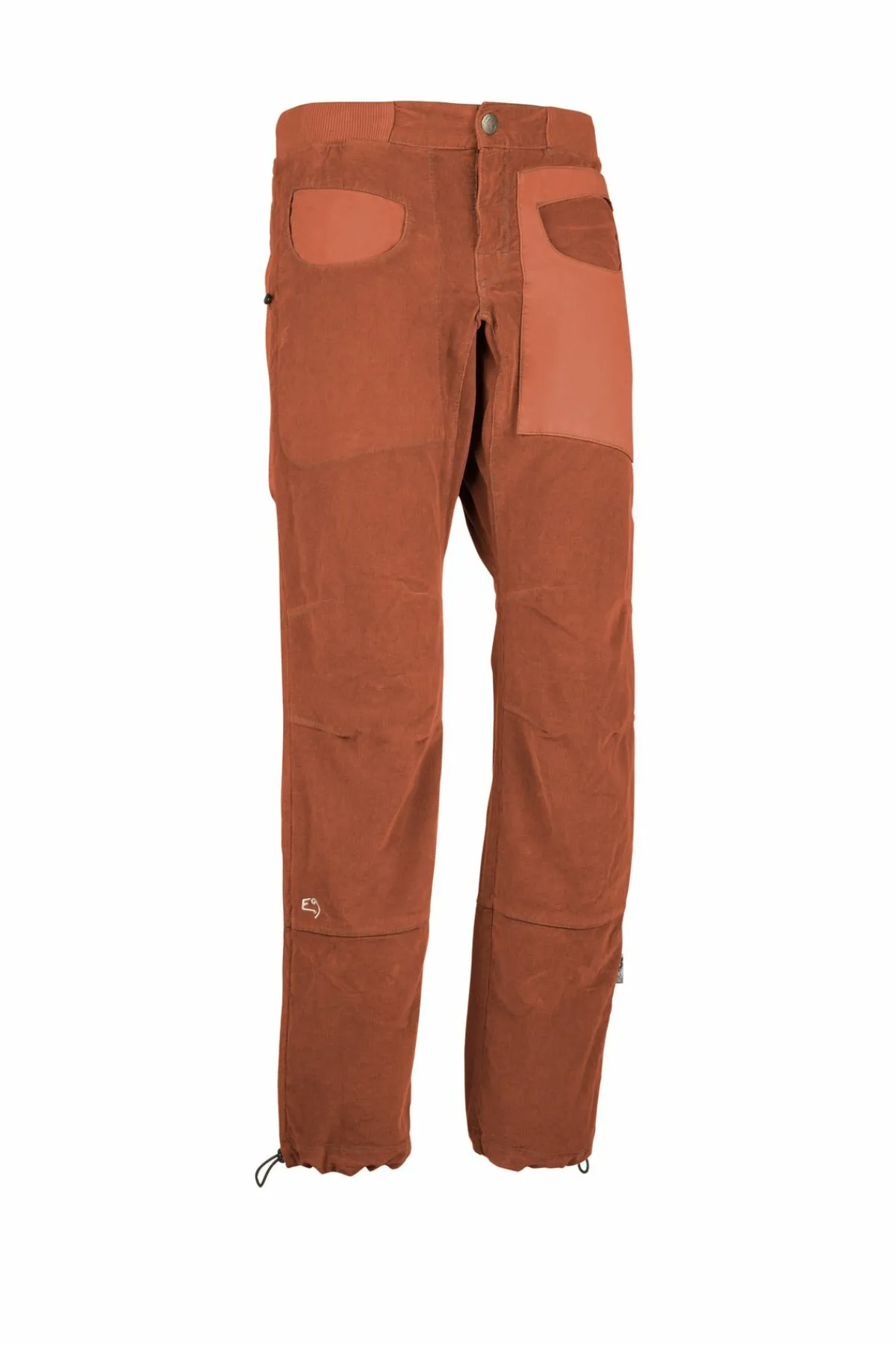 Outdoor- Und Kletterhose Aus Bio-Baumwollcord. Stickerei Auf Der Vorderseite. Verstellbarer Beinabschluss Und Taille. Bürstenhalter Auf Beiden Seiten. Maximaler Komfort Und Mobilität. Schlanke Passform. Hergestellt In Italien.