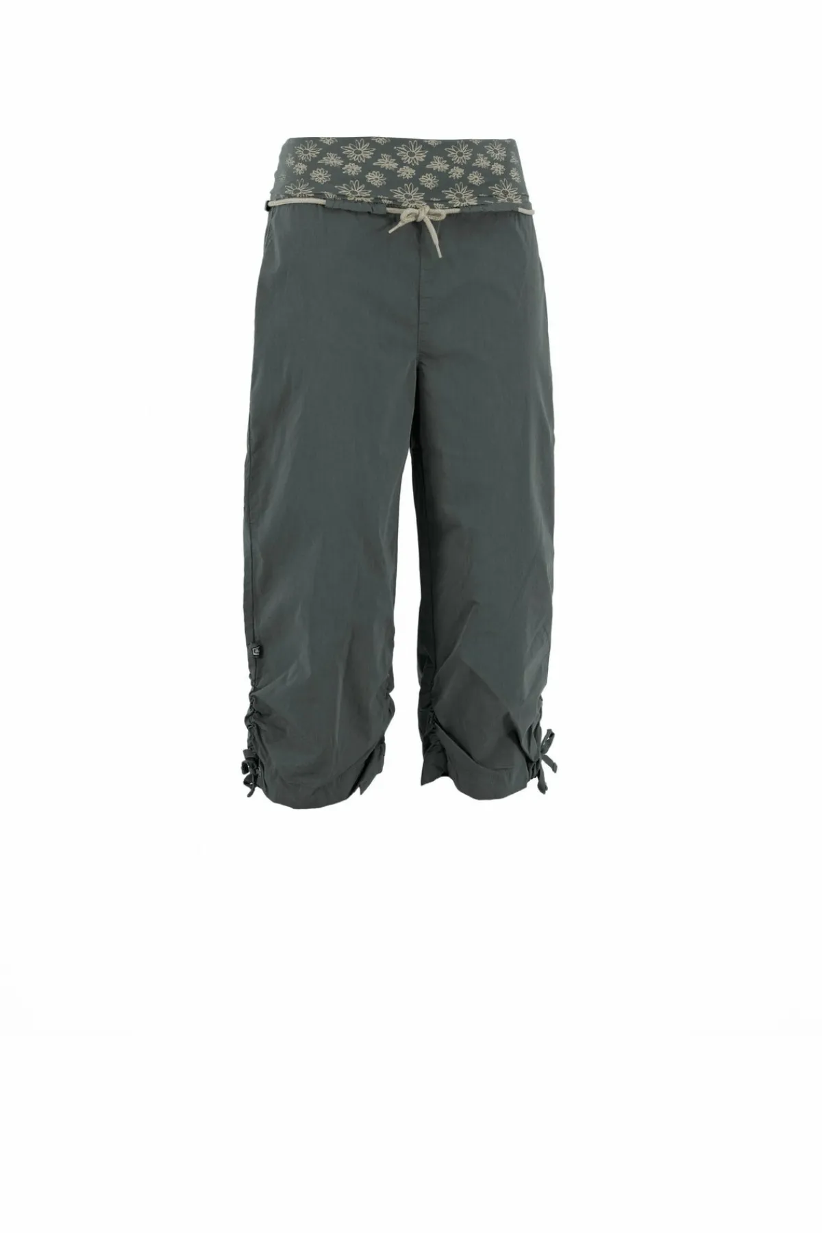 Outdoor- Und Kletterhose Aus Technischem Popoline. Der Bund Ist Aus Bielastischem, Bedrucktem Bio-Baumwollstoff. Stickerei Auf Dem Hinteren Bein. Bester Komfort Und Mobilität. Hergestellt In Italien.