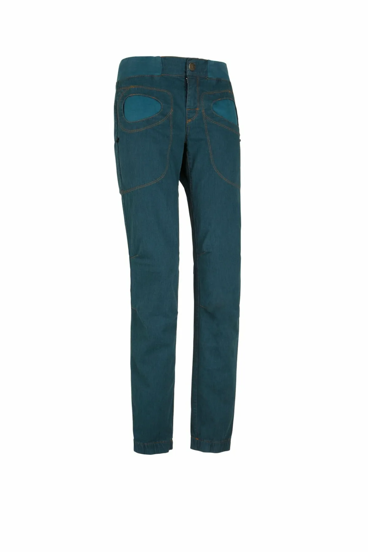 Outdoor- Und Kletterhose Aus Strukturiertem Bio-Baumwollstoff. Ripp An Der Taille. Verstellbare Taille. Original Genähte Taschen. Bürstenhalter Auf Beiden Seiten. Eng Passend. Hergestellt In Italien.