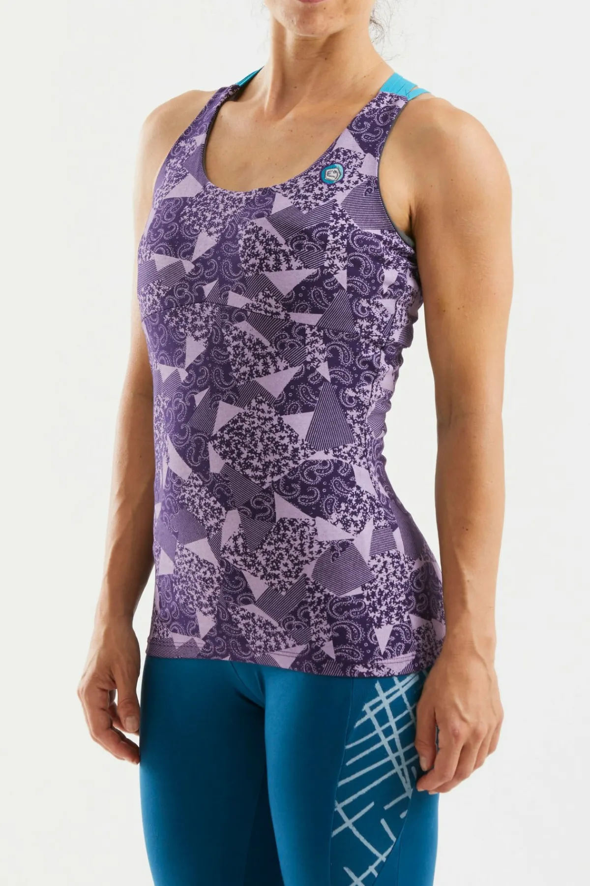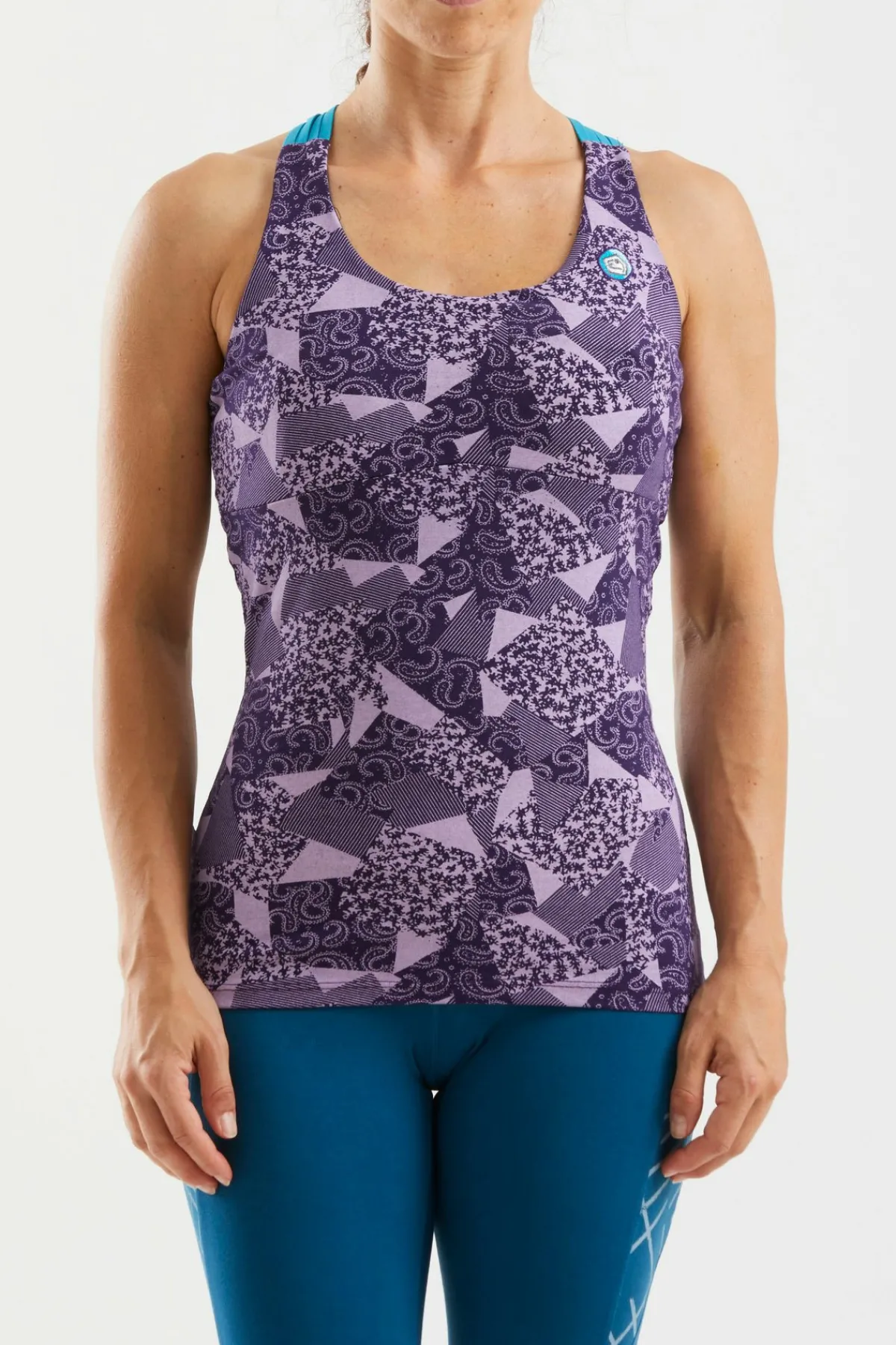 Integrierter Tank-Top-Bh Aus Bielastischem Bedrucktem Stoff. Bio-Baumwolle. Abnehmbare Polsterung. Stickerei Auf Der Vorderseite. Elastische Hosenträger. Guter Komfort Und Gute Passform. Hergestellt In Italien.