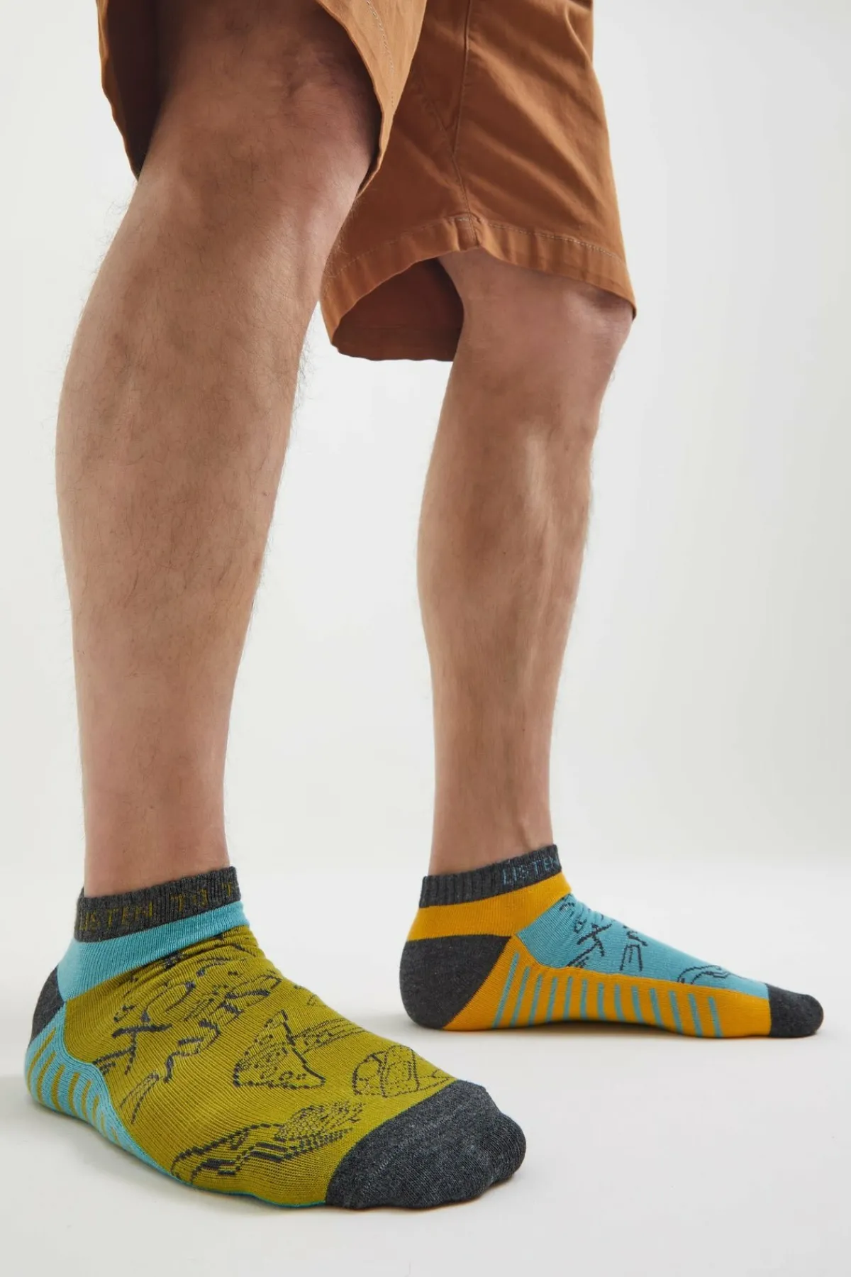 Mini-Crew-Socken Aus Leichter Stretch-Baumwolle. „Preserve The Rock“-Grafik Auf Der Vorderseite. Holen Sie Sich Zwei Und Passen Sie Die Farben An.