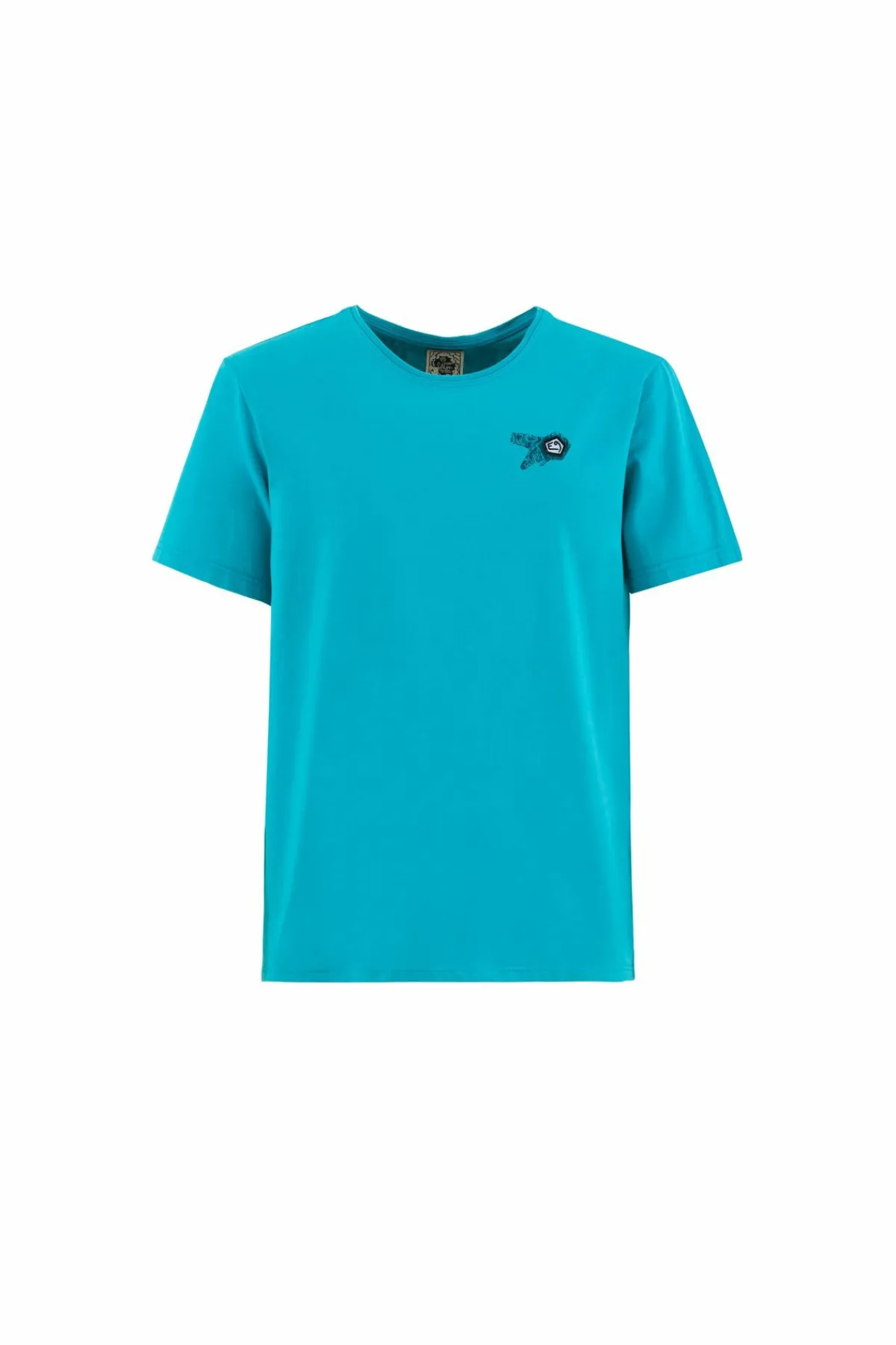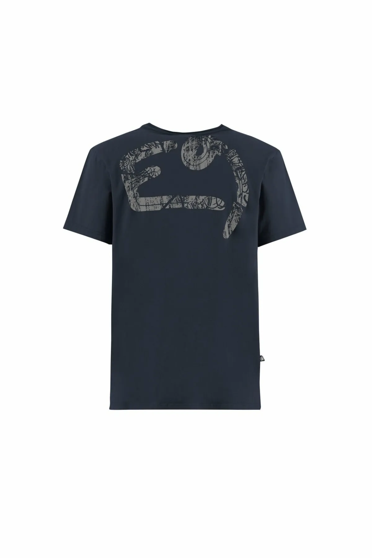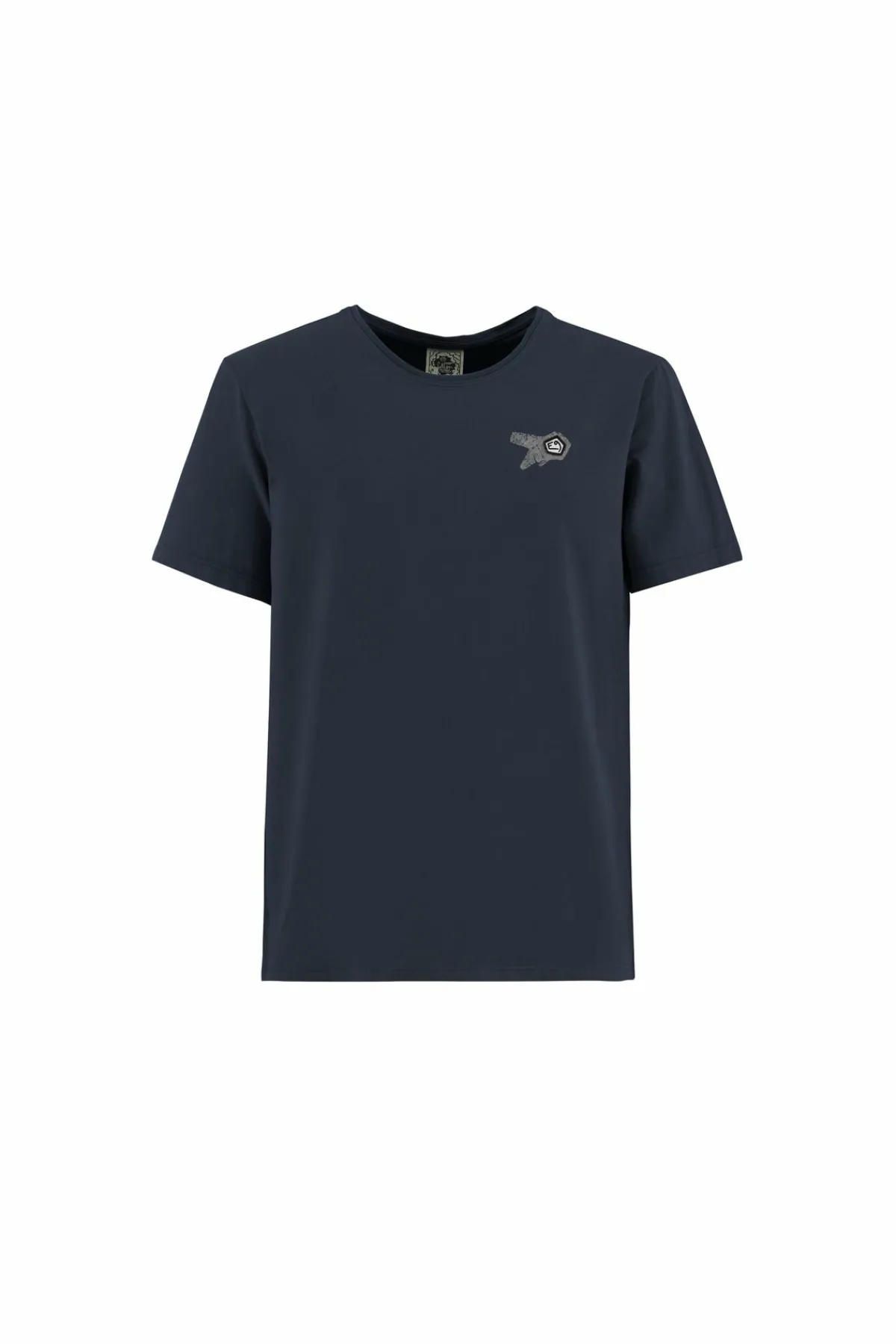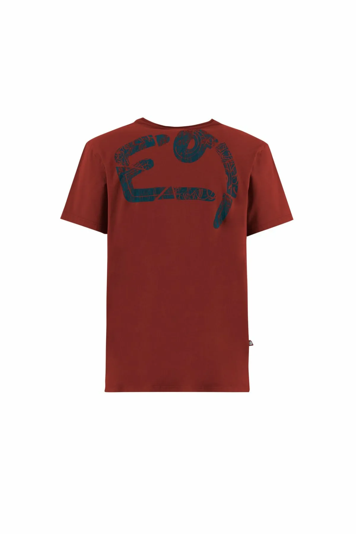 Bielastisches T-Shirt Aus Bio-Baumwolle. Outdoor- Und Kletterlinie. Druck Auf Der Herzseite Und Auf Der Rückseite. Normale Passform. Hergestellt In Italien.