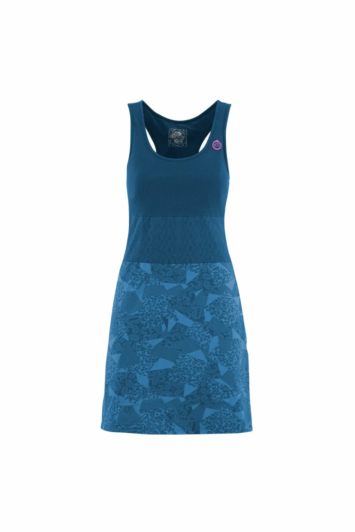 Kleid Aus Bio-Baumwolljersey Und Jersey-Jacquard. Ein Perforierter Bund. Outdoor- Und Kletterkonzeptlinie. Stickerei Auf Der Herzseite. Guter Komfort. Normale Passform. Hergestellt In Italien.