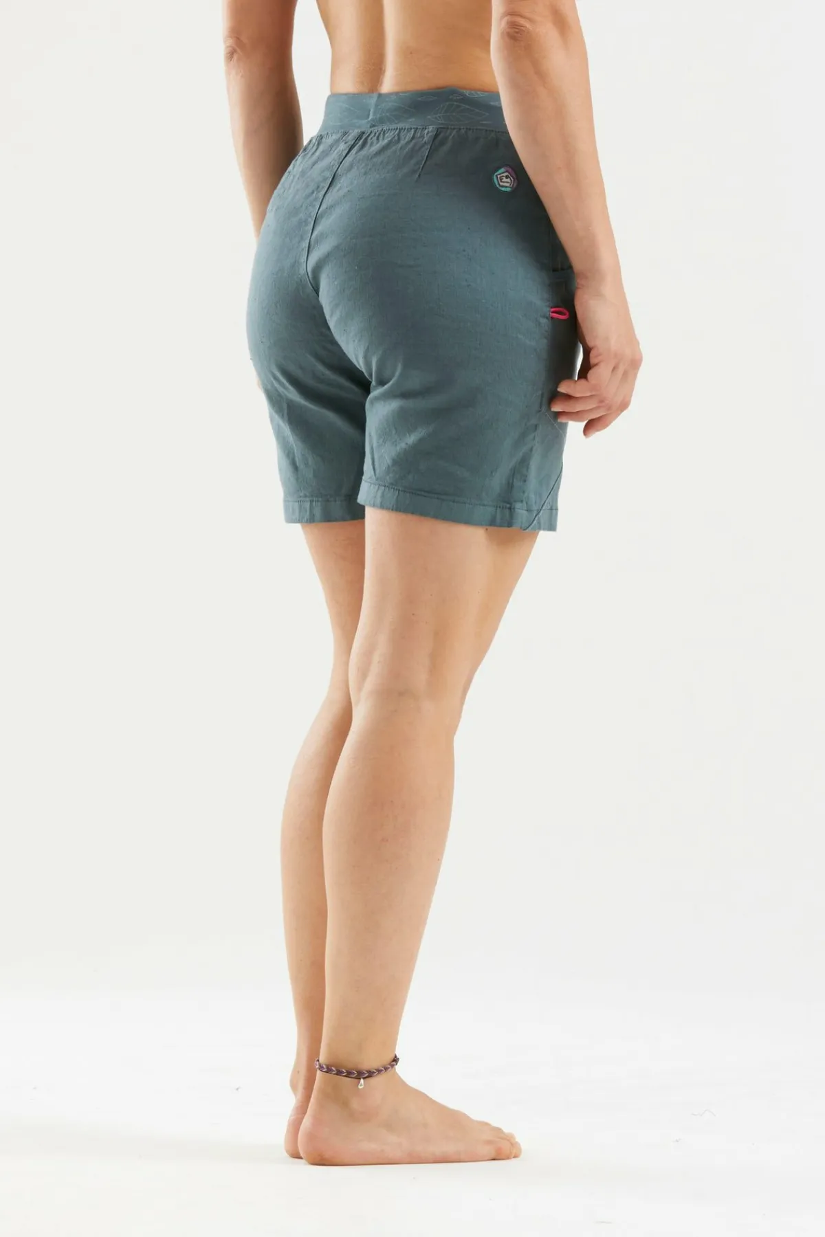 Outdoor- Und Klettershorts Aus Leinen Und Bio-Baumwolle. Original Geschnittene Vordertaschen. Stickerei Am Hinteren Bein. Bürstenhalter Auf Einer Seite. Maximaler Komfort Und Mobilität. Schlanke Passform. Hergestellt In Italien.